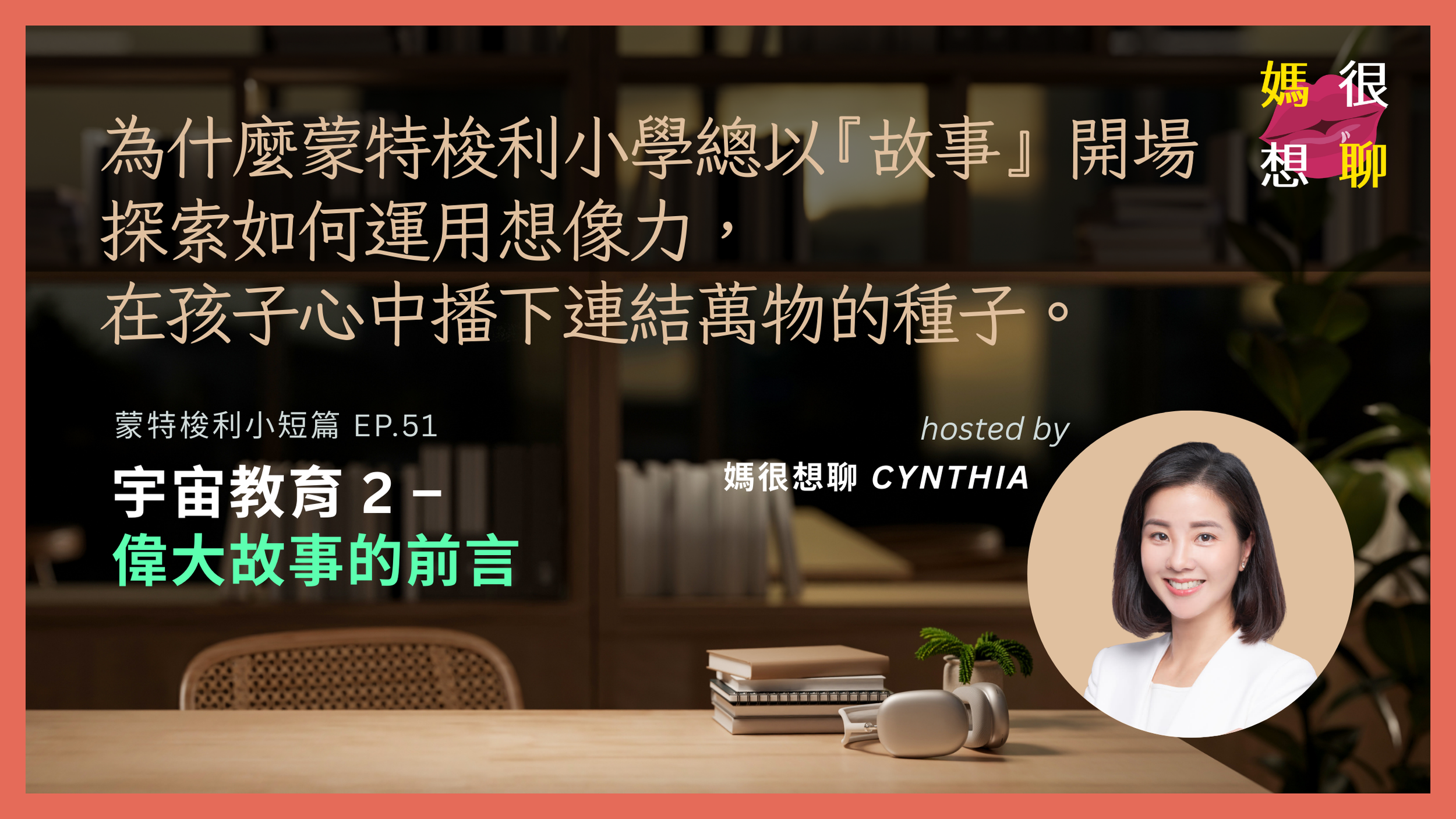 為什麼蒙特梭利小學老師總是以故事開場?這不只是為了吸引注意力,更是為了在孩子心中播下種子。本集 Cynthia 將分享「宇宙偉大故事」的獨特性:它不只是傳遞歷史或科學,更是一種「心理框架」的建構。我們將探討故事如何運用孩子 6-12 歲強大的想像力,將看似枯燥的學科知識,轉化為一幅生動的宇宙全景圖。當孩子感受到那股推動萬物的「宇宙智慧」,學習將不再是被動的吸收,而是一場對生命起源的敬畏之旅。